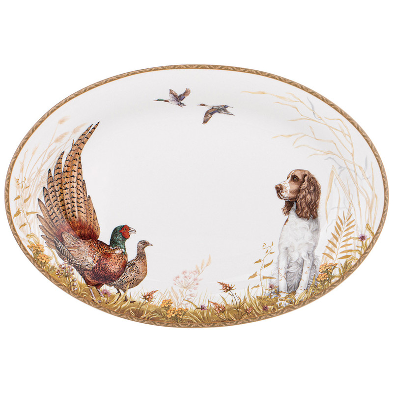 Блюдо овальное 'Охота' 32х22 см (тетерева)