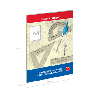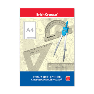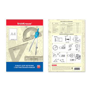 Бумага для черчения А4, 10 листов, вертикальная рамка, ErichKrause