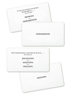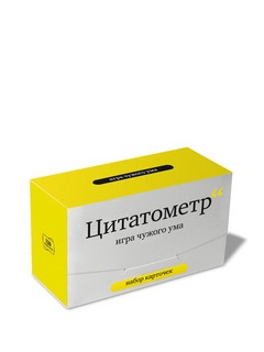 Игра в слова — «Цитатометр». В коробке 120 двусторонних карточек с известными и не очень цитатами великих людей и тремя варинтами их окончания. Игроки должны выбрать верный вариант. Играйте с друзьями или дома всей семьёй — удовольствие от игры в любом случае гарантировано!