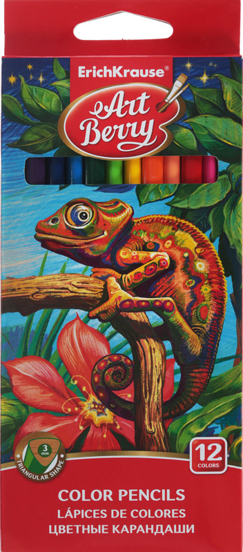 Цветные карандаши ArtBerry, трехгранные, 12 цветов