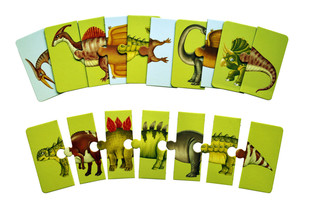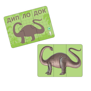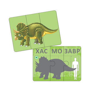 — Когда ребёнок соберёт слово, силуэт животного, то узнает, каков его размер относительно роста человека, а символ в кружочке покажет, был динозавр травоядным или хищником.