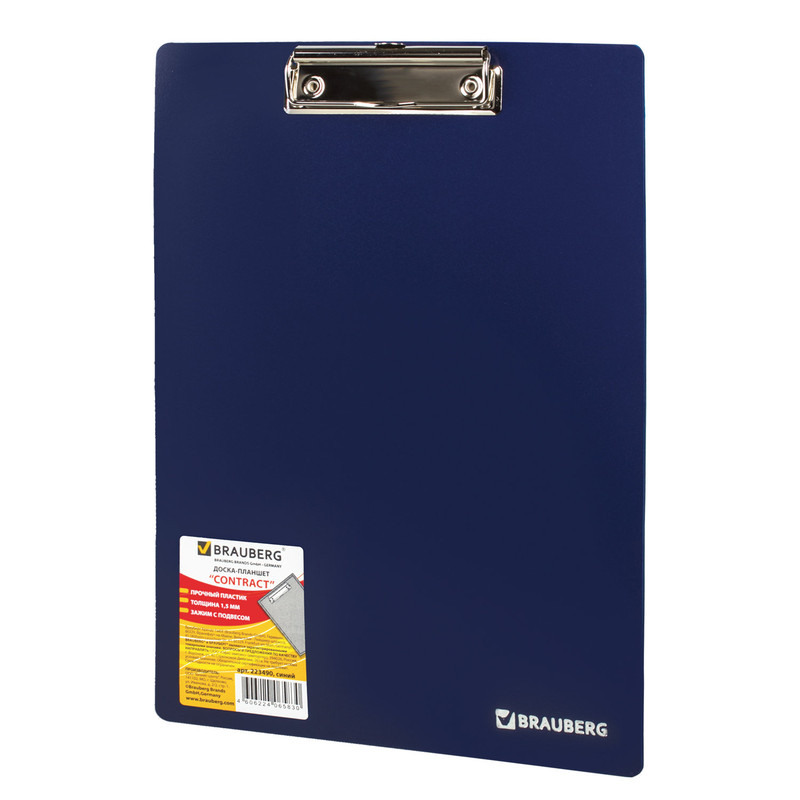 Доска-планшет BRAUBERG Contract сверхпрочная с прижимом А4, пластик, синяя