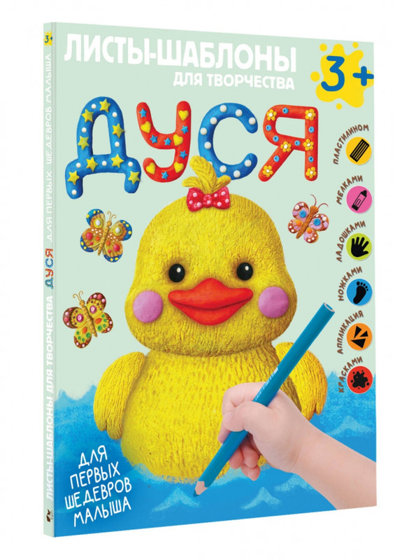 Альбом для совместного творчества мамы и малыша. Готовые шаблоны для поделок и раскрашивания. Каждый арт-лист — это красочная картинка-заготовка, которую нужно творчески доработать. В альбоме 60 арт-листов и 40 готовых занятий. К каждому занятию дан ЛИСТ ДЛЯ МАМЫ с инструкцией, картинкой для тренировки, советами по предварительной беседе с малышом, описанием материалов и техники выполнения работы. И ЛИСТ ДЛЯ МАЛЫША с большой картинкой для творчества. В пособии собраны все развивающие творческие техники для самых маленьких: простая аппликация, рисование ладошками, ножками, пластилином, пальчиками, кисточкой и восковыми мелками. Каждый лист легко отрывается от блока и запечатан только с одной стороны — законченная работа не слипнется со следующими страницами, а краска и пятна от пластилина на обороте работы не испортят других изображений. На каждом арт-листе есть место для подписи имени и возраста маленького художника — шедевры малыша можно дарить родным и друзьям, относить в детский сад на конкурс поделок или украшать стены дома! Задания разработаны и нарисованы профессиональными художниками с учётом психофизических особенностей малыша — с художественной задачей справится даже самый маленький ребёнок.