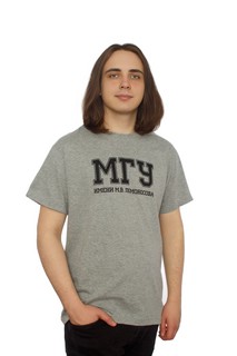 Футболка с надписью МГУ имени М.В. Ломоносова на русском языке.
