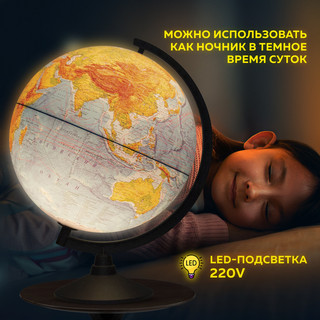 Глобус физический/политический Globen Классик, диаметр 320 мм, с подсветкой