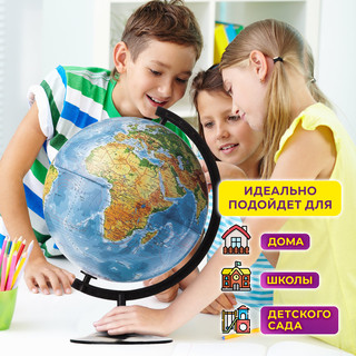 Глобус позволит ознакомиться с физической и политической картой мира. Подходит для использования в детских садах и школах. Поможет узнать об