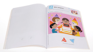Все пособия KUMON используют принцип «от простого к сложному». Так, в этой тетради ребёнку сначала предстоит приклеивать на рисунок однотонную деталь простой геометрической формы. Затем — деталь с рисунком, поворачивая её так, чтобы узор на ней совпал с узором на основной картинке. После этого ребёнок будет приклеивать на картинку несколько деталей, выбирая для каждой из них подходящее место. В последующих заданиях ребёнку нужно дополнить картинку недостающими деталями пазла. В заключительной части тетради предлагаются упражнения на «собирание» не всей картинки, а одного её объекта из нескольких частей. Работа с клеем и аппликациями не только развлечёт ребёнка, но и познакомит его с геометрическими фигурами.