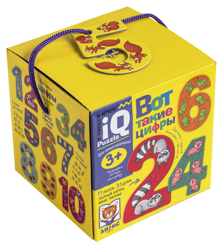 Набор состоит из 11 пазлов, которые познакомят ребёнка с цифрами и азами счёта. Пазлы состоят из