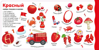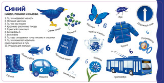Крупные и яркие картинки для изучения цветов и их оттенков: 7 основных и 5 дополнительных цветов, а также многоцветный разворот с заданиями на закрепление знаний;