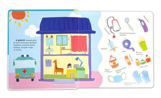 Всё самое интересное из сумки врача: 26 интерактивных элементов в одной книге! Пазлы, клапаны, задвижки, которые можно двигать, крутить, вынимать из книжки. Только безопасные материалы, без батареек.