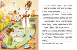 Мама Стёпки — врач скорой помощи. Но мальчик почти ничего не знает о людях, которые лечат людей. Зато Стёпка очень любит задавать вопросы. Давай и мы узнаем, почему машина скорой помощи «летит», так ли страшна прививка, что это за страшное слово — «рентген», кто лечит животных и как спасти игрушки от эпидемии. А заодно сходим вместе со Стёпкой к зубному врачу и ухо-горло-носу.