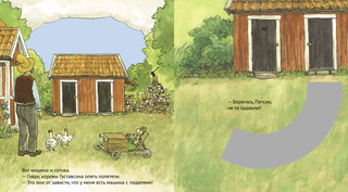 Едва взошло солнце, Финдус разбудил Петсона: пора мастерить машину! Вместе с любимыми героями читатели смогут заглянуть в ящики мастерской, покрутить колесо и прокатиться вместе с Финдусом.