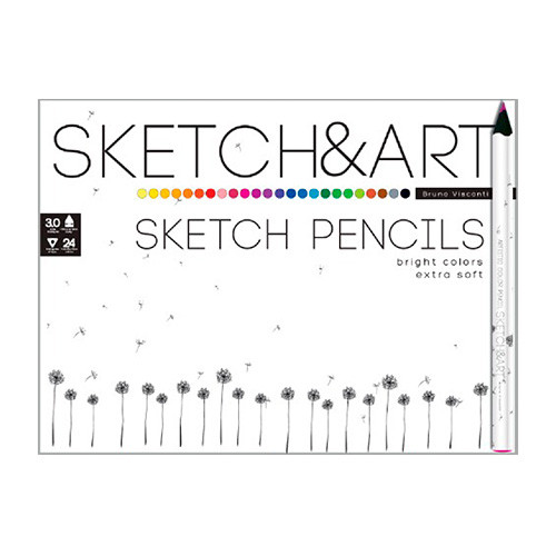 Карандаши цветные 'SKETCH&ART' 24 цвета, утолщенные, грифель 4 мм