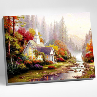 Уютный домик на берегу горной реки в окружении величественных гор и многолетних сосен можно нарисовать на холсте в технике рисование по номерам. Создание картины по номерам на холсте не требует специальных навыков и художественных способностей. Нанесенный на холст контур рисунка с разбивкой на маркированные сегменты выступает в роли «путеводителя» по созданию картины. Рисование по номерам развивает мелкую моторику рук, память и воображение.