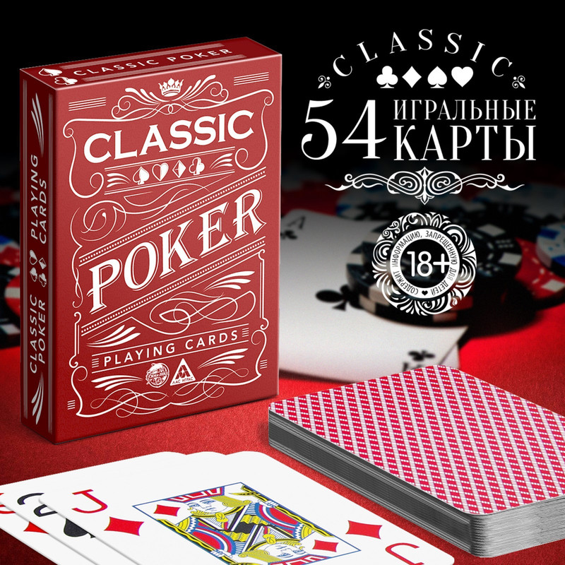 Карты игральные «Poker classic», 54 пластиковые карты, 18+