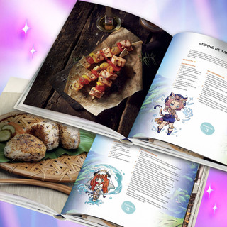 2. В книге вас ждут рецепты разнообразных блюд и закусок из мира Тейвата — от супов и салатов до десертов и напитков.