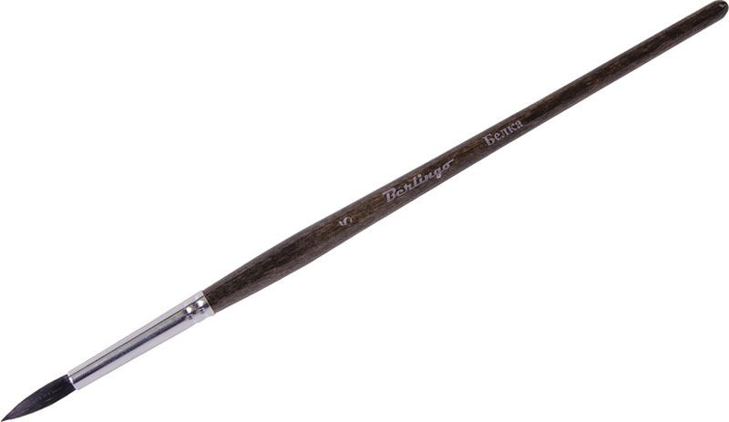 Художественная круглая кисть из натурального волоса белки. Кисть имеет острый кончик и отличается хорошей мягкостью и эластичностью. Подходит для работы с акварелью, темперой, гуашью.