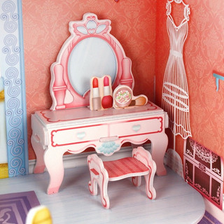 В замке два этажа: на первом находится зал с красивым убранством, где можно насладиться звучанием рояля, а на втором уютная опочивальня, где принцесса сможет привести себя в порядок и понаблюдать за происходящим с балкончика.