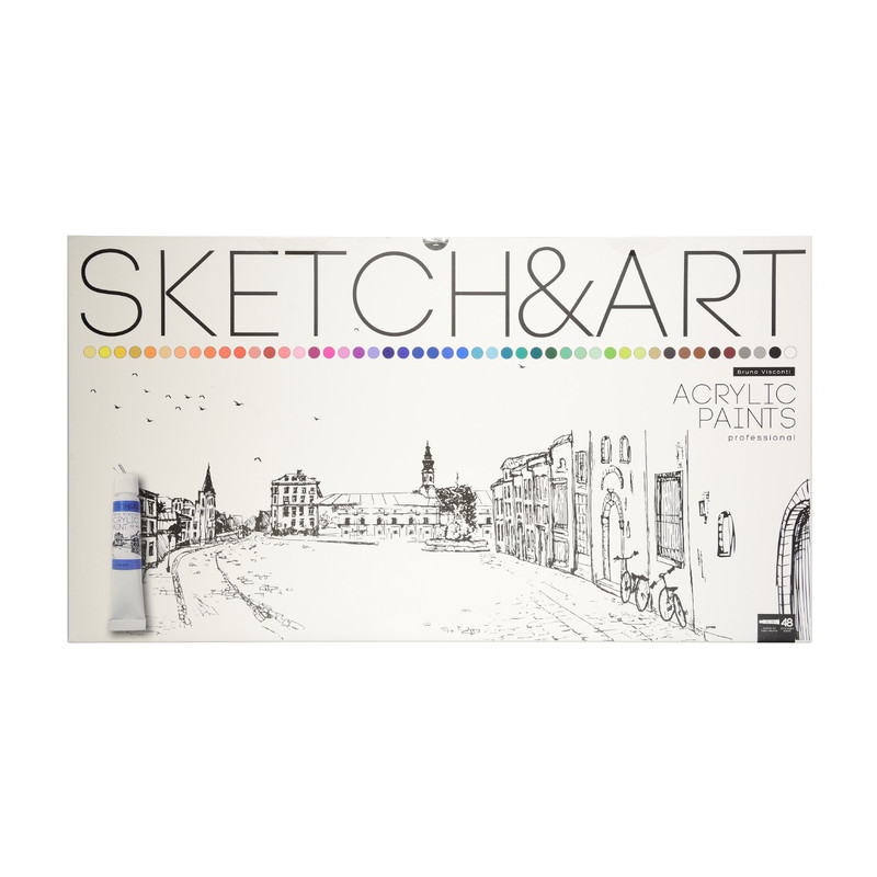 Акриловые краски предназначены для художественных и оформительских работ, прикладного искусства и детского творчества. Они подходят как для работы по бумаге и картону, так и для росписи деревянных поверхностей, холста, керамики, гипса и других материалов. Акриловыми красками можно успешно имитировать технику гуаши, акварели, масла. В процессе рисования их можно разбавлять водой или акриловым связующим. Хорошая кроющая способность, растворимость, водо- и светостойкость — все это выгодные преимущества красок от Bruno Visconti. Практичная и надежная упаковка — ПВХ тюбики по 12 мл — гарантия удобного использования и долгосрочного хранения. Набор из 48 тюбиков с красками разнообразных цветов упакован в