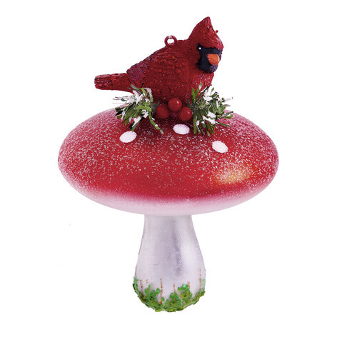 Красный кардинал на грибочке (стекло) 9х9х13 см