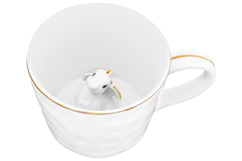 Кружка 'Любопытный дракон внутри кружки' 300 мл, белая с золотом