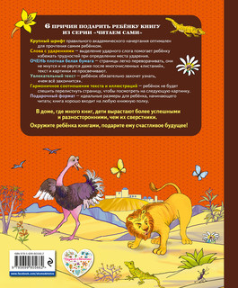 6 причин подарить ребёнку книгу из серии «Читаем сами»: Крупный шрифт правильного академического начертания оптимален для прочтения самим ребенком. Слова с ударениями — выделение ударного слога помогает ребенку избежать трудностей при определении места ударения. ОЧЕНЬ плотная белая бумага — страницы легко переворачивать, они не мнутся и не рвутся даже после многочисленных «листаний», текст и картинки не просвечивают. Увлекательный текст — ребенок обязательно захочет узнать, «чем все закончится». Гармоничное соотношение текста и иллюстраций — ребенок не будет спешить перелистнуть страницу, чтобы посмотреть на следующую картинку. Подарочный формат — идеальные размеры для ребенка, начинающего читать; книга хорошо входит на любую книжную полку. В доме, где много книг, дети вырастают более успешными и разносторонними, чем их сверстники. Окружите ребенка книгами, подарите ему счастливое будущее!