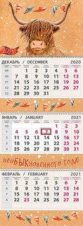 Квартальный трехблочный календарь "Праздник и бык 2021", артикул 607.127
