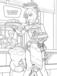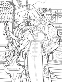 Отправляйся в удивительное путешествие по Ли Юэ в компании с любимыми персонажами! Торговые улицы и неожиданные встречи на оживленной пристани, мудрость и спокойствие Адептов и тайны Разлома — все это и многое другое ждет тебя на страницах этой раскраски, нарисованной популярной художницей Snegg.