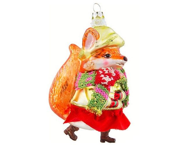 Стеклянная новогодняя игрушка на вашу ёлочку — Лиса Алиса. Высота игрушки 12 см. Предусмотрена петелька для подвешивания.
