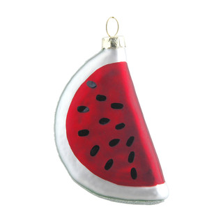 Украшение на ёлку из стекла Ломтик арбуза — изделие из коллекции новогодних игрушек и аксессуаров Holiday Classics. Ёлочные игрушки в виде сладостей, продуктов, овощей, фруктов, напитков нынче в моде. Конечно, в нашей коллекции не обошлось без арбуза — сладкого и сочного, напоминающего о жарком лете и прекрасных деньках, проведённых с близкими на весёлом пикнике.