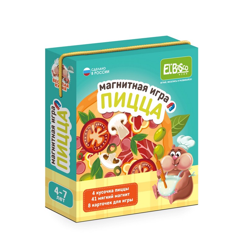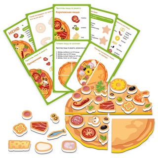 Увлекательная игра для всей семьи. Она вряд ли сможет надоесть, ведь каждый раз, открывая коробочку, ребенок будет фантазировать о том, какую пиццу он приготовит на этот раз. Игры на магнитах отлично способствуют развитию логики, мышления, фантазии. Также, в наборе есть 8 карточек с различными заданиями, что делает игру еще более интересной.