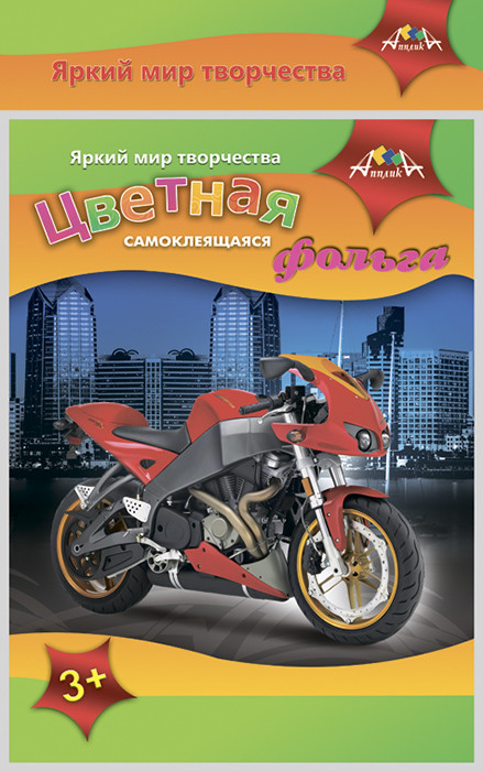 Цветная фольга Апплика «Мотоцикл» формата А4 идеально подходит для детского творчества: создания аппликаций, оригами и многого другого. В упаковке 7 листов фольги разных цветов. Детские аппликации из самоклеящейся цветной фольги — отличное занятие для развития творческих способностей и познавательной деятельности малыша, а также хороший способ самовыражения ребенка. Рекомендуемый возраст: от 3 лет.