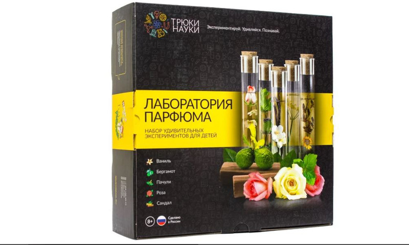 Набор удивительных экспериментов для детей, в который входят ингредиенты для многократного приготовления парфюмов на основе эфирных масел.