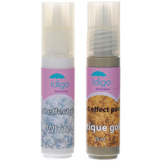 Набор витражных красок «Idigo» используется для декорирования предметов из стекла, керамики и зеркал. При нанесении этих красок создается эффект полупрозрачного матового стекла, напоминающий морозный рисунок на стеклах. Нетоксичные краски на водной основе высыхают в течении 30 минут и после высыхания становятся несмываемыми. В набор входят два тюбика с краской золотого и белого цветов. 2 тюбика с краской