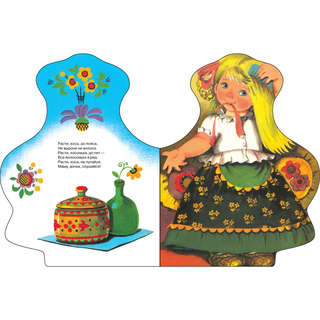 Русские народные песенки в обработке Н. Иваницкого и О. Капицы. Художник М. Рудаченко В вашем детстве наверняка было много замечательных любимых книг. Давайте познакомим с ними и новое поколение читателей. В этой книжке вы найдете народные потешки на все случаи жизни. С ними так весело умываться, причесываться, делать первые шаги, кушать. А переделав все дела — спокойно засыпать. Оригинальная вырубка книги сделана в виде фигуры девочки. Поэтому можно не просто читать потешки, но и играть с ребенком. Эта книга станет прекрасным подарком для самых маленьких читателей. Прекрасный подарок для девочки. Книгу можно подарить на любой праздник. Эту книгу можно читать вместе с мамой, можно читать вместе с папой, можно читать вместе с бабушкой, можно брать с собой в детский сад, а можно читать и в путешествии. Для детей до трех лет.