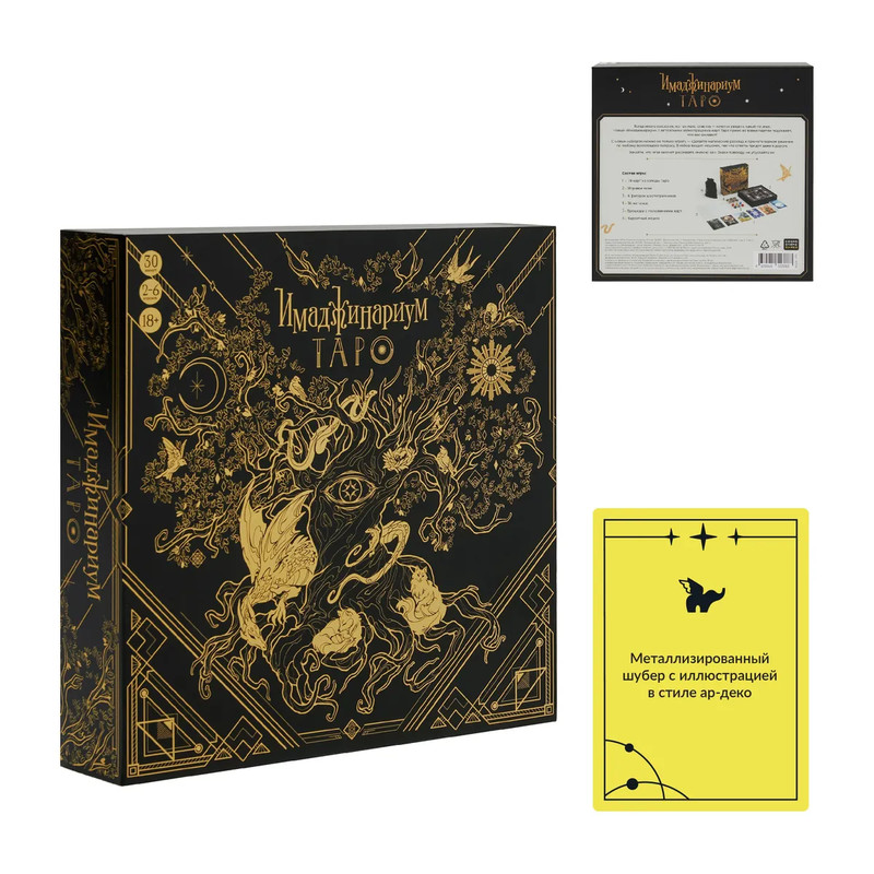 «Имаджинариум: Таро» станет оригинальным подарком для друзей: это и колода для гадания, и настольная игра, и яркая деталь интерьера. Коробка и игровое поле — настоящие произведения искусства. Дорогое сочетание чёрного цвета и золота, фишки в форме