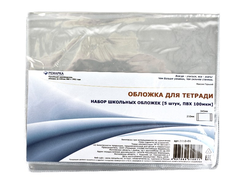 Плотные прозрачные обложки для школьных тетрадей формата А5 (210×345 мм), набор из 5 штук. Толщина пленки 100 мкм 07–2019, производство Россия.