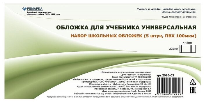В комплекте 5 обложек размером 226×448 мм, толщина 80 мкм.