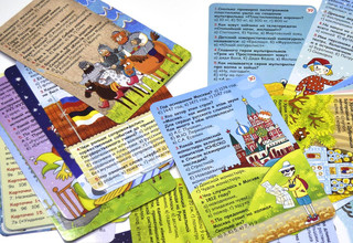 Внутри этого набора из 50 двухсторонних карточек вы найдете более 450 вопросов и интересных фактов о России — от истоков до современности, о культуре и истории, о географии и русском быте, о литературе и письменности и многом другом. А забавные иллюстрации помогут ответить на некоторые вопросы, и поближе познакомиться со своей страной!