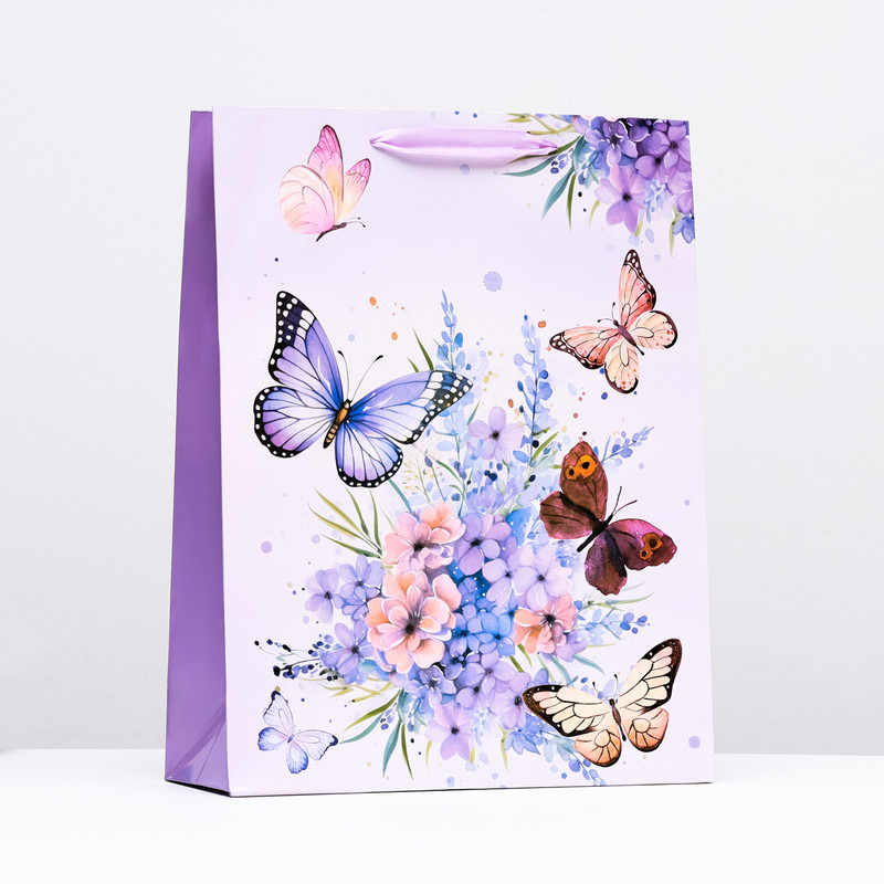 Пакет подарочный ламинированный 'Пархающие бабочки', 31х40х11.5 см