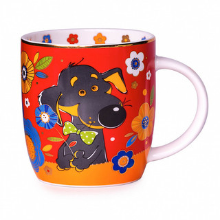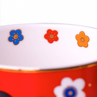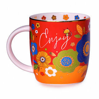 Чайная кружка с авторским рисунком Ваксона, яркой цветочной композицией в оранжевых тонах и эффектными золотыми штрихами.