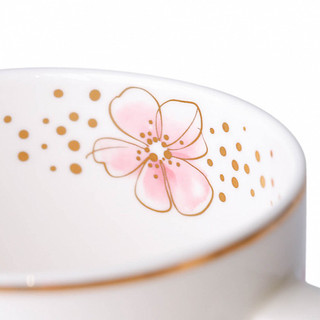 Чайная кружка с авторским рисунком Зайки Ми, розовым кружевом цветов и россыпью золотых штрихов.