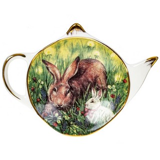 Подставка под чайные пакетики с символом года изготовлена из фарфора с изображением кроликов на лужайке и позолотой. Подставка для чайных пакетиков символ 2023 года «Кролик» поставляется по одной штуке в подарочной коробке.