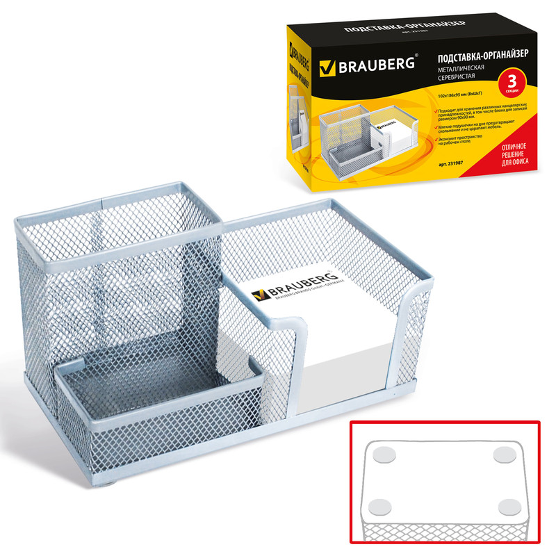 Подставка-органайзер 'Germanium' металл, 3 секции, 102x186x95 мм, серебристая