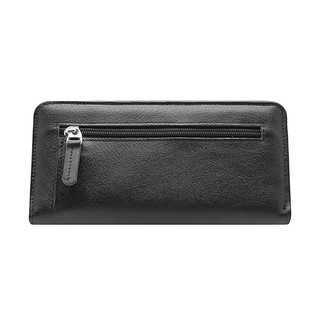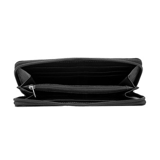 Натуральная кожа. Размер (ШхВ): 20×10 см. Закрывается на молнию. Внутри: два отделения для купюр, скрытый карман на молнии, двенадцать отделений для пластиковых карт. Снаружи один карман на молнии.