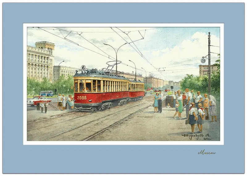 Постер 'Москва' А4 с двойным цветным паспарту №12