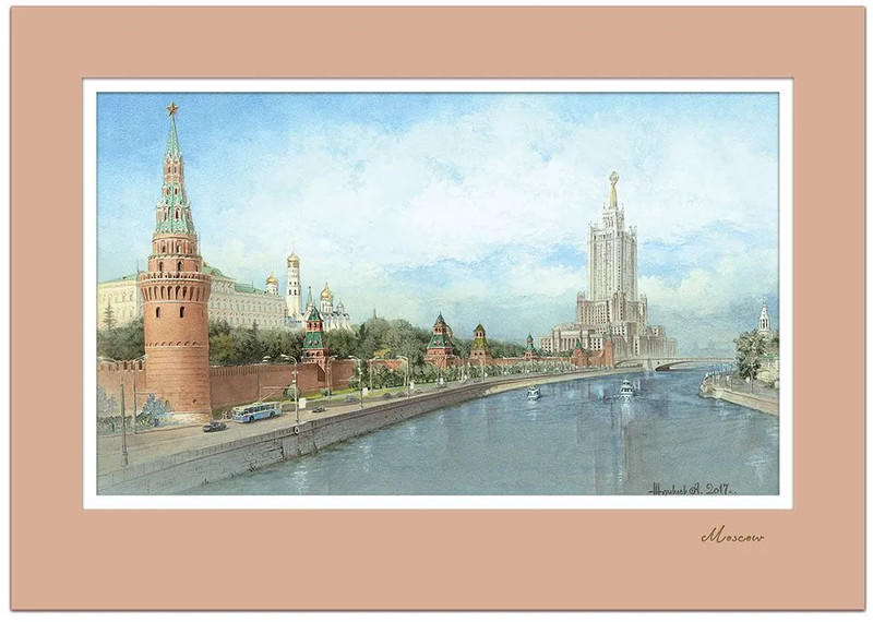 Постер 'Москва' А4 с двойным цветным паспарту №13