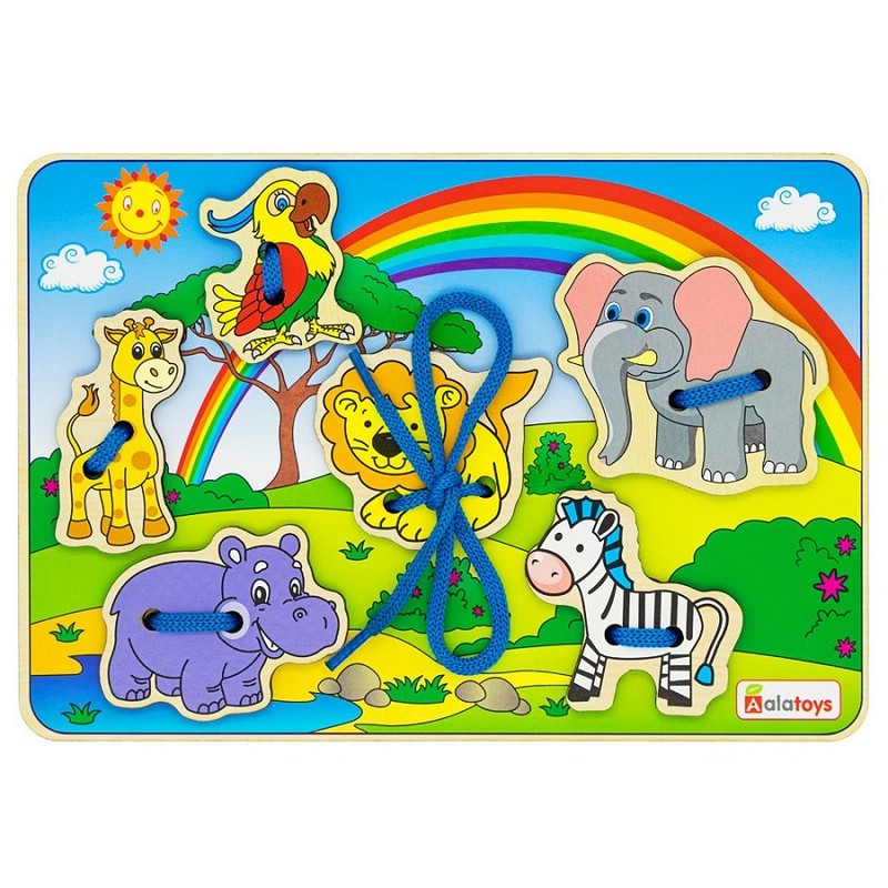 Шнуровка «Саванна"от Алатойс представляет собой красочную основу с сюжетным рисунком и 6 фигурок с изображением экзотических животных. Задача ребёнка- аккуратно пришнуровать фигурки. Придумайте интересную историю с героями шнуровки, чтобы учиться шнуровать стало ещё интереснее!