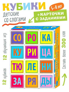 Набор состоит из 12 кубиков со слогами. На листовках даны различные задания на чтение слогов и слов, которые нужно выполнить с помощью кубиков. Ребёнок будет учиться читать слоги, составлять из них слова, читать. Во время игры происходит развитие навыка чтения, тренировка мелкой моторики. Наклейки на кубики сделаны из качественной гладкой бумаги, которая не портится от игры.