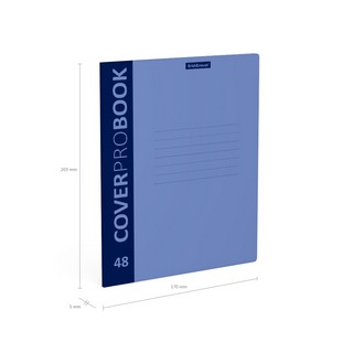 Тетрадь общая ученическая формата А5+ (170×203 мм). Обложка из высококачественного износостойкого матового пластика с фактурой «песок». В блоке 48 листов в клетку с полями. Бумага офсетная плотностью 60 г/м2. Цвет линовки — синий. Скругленные уголки обложки и блока. Тип скрепления — скоба.